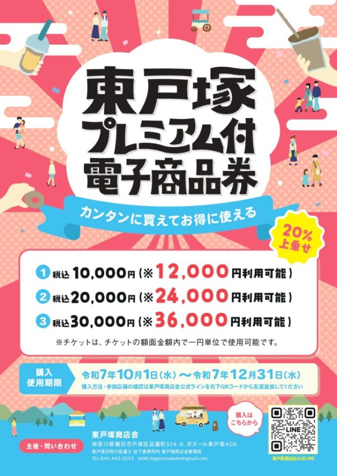 当店では『東戸塚プレミアム付き電子商品券』をお取り扱いしています。